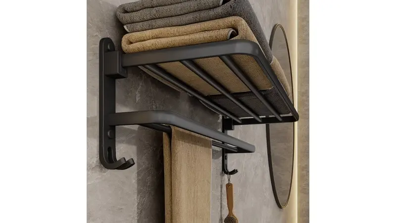 Matte Black 50CM Folding Holder With Hook Towel Holder Wall Moun