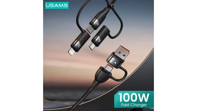 USAMS U85 3 in 2 USB Type C Cable For iPhone 14 Pro Max 13 12 Charger Cable PD 100W 6 in 1 Cable For Huawei Xiaomi Samsung Phone