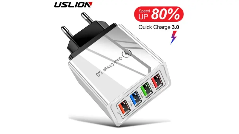 USLION 4 Ports 3A USB Charger Quick Charger 3.0 For iPhone 14 13 12 Xiaomi Samsung EU US Plug Wall Mobile Phone Charger Adapter