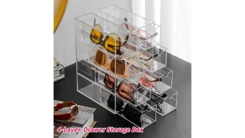 4-layer Plastic Drawer Storage Box Transparent Dustproof Sunglas
