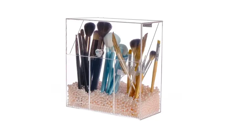 Acrylic Makeup Brush Holder with Lid Clear Cosmetic Brush Container Storage Box Large Capacity 3-Slots Container for Brushes