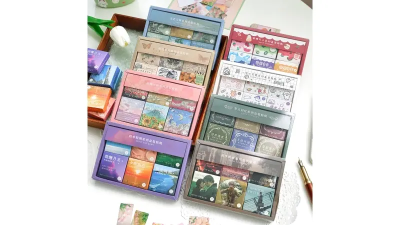 JIANQI 300pcs/pack Cute Stickers Film Paper Junk Journal Art Col