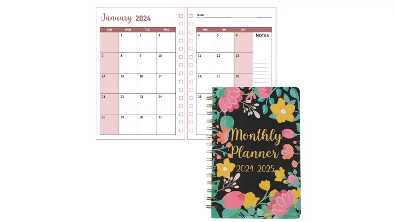 52 sheets 2024-2025 Floral Monthly Planner Two Years Vintage Cardboard Cover Calendar Weekly Schedule Student Class Notebook