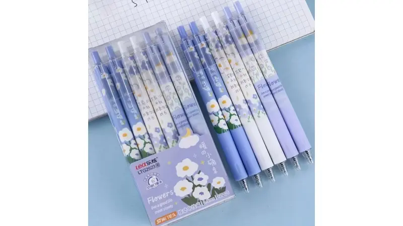 6pcs Ins Warm Luck Series Mechanical Gel Pens Cute Floral Black Ink Needle Pens Smooth Writing Ballpoint School Office Supplies