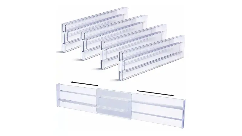 Drawer Dividers Organizers 4 Pack, Adjustable 8cm High Expandable from 27.5-52cm Kitchen Drawer Organizer, Clear Plastic