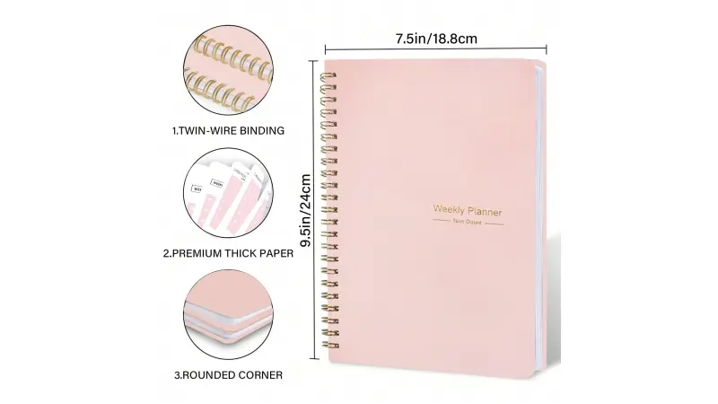 52 Weeks Weekly Planner Notebook A5 Undated Spiral Agenda Daily Student Schedules Journal Stationery Office School Supplies