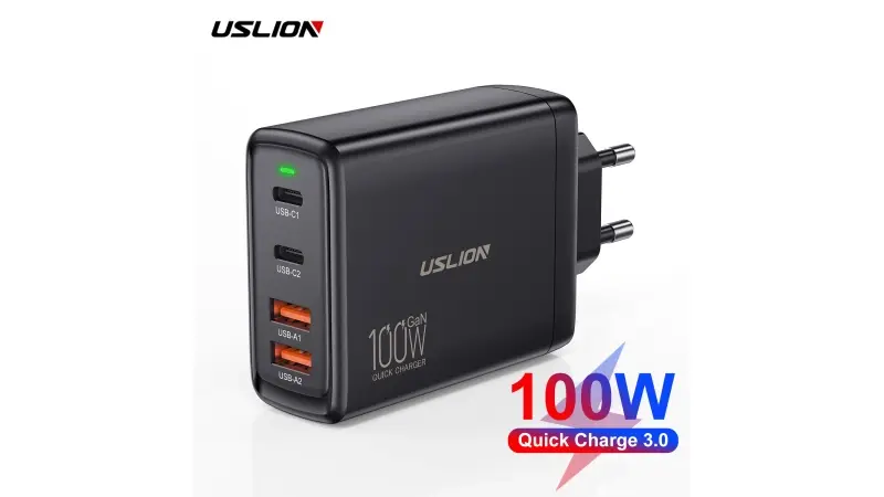 USLION 100W GaN Charger Dual USB A Dual Type C PD Fast Charge For Macbook Air iPhone 15 14 Pro Max Samsung Xiaomi EU KR US Plug